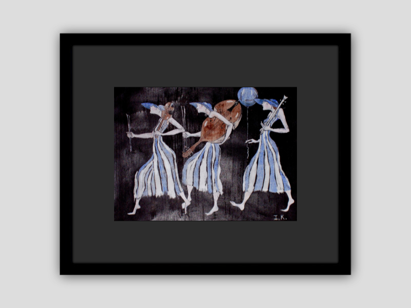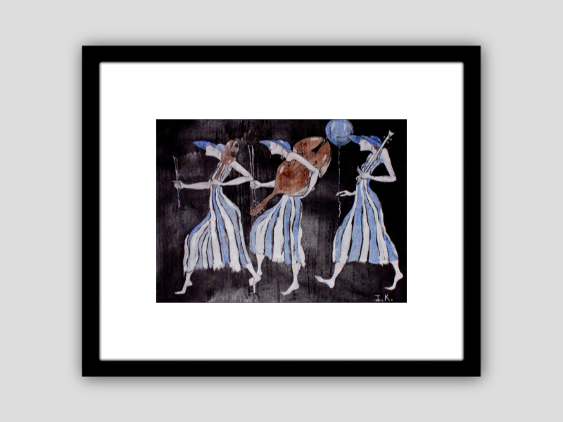 Print dimensions are 11" by 14". Matting is cut 16" by 20". Image of print in mat and frame is not to scale. Frame not included.