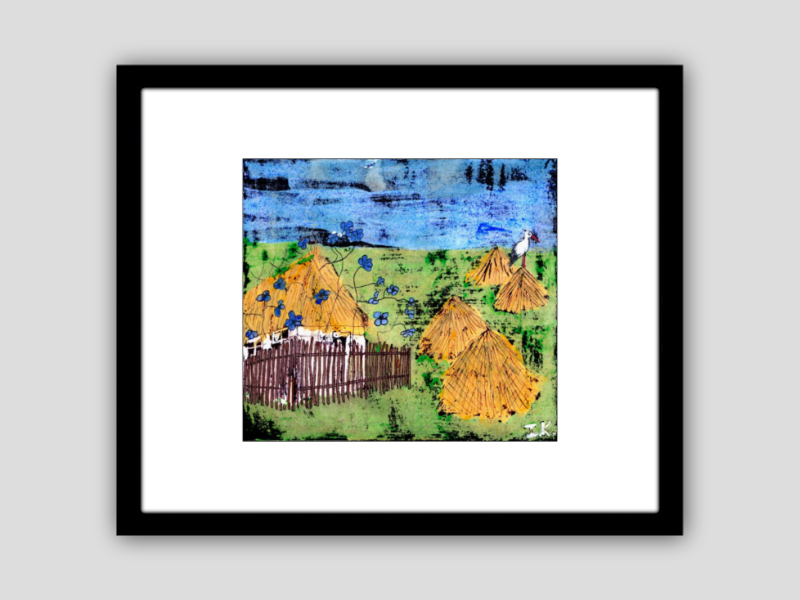 Print dimensions are 12" by 12". Matting is cut to 16" by 20". Image of print in mat and frame is not to scale. Frame not included.
