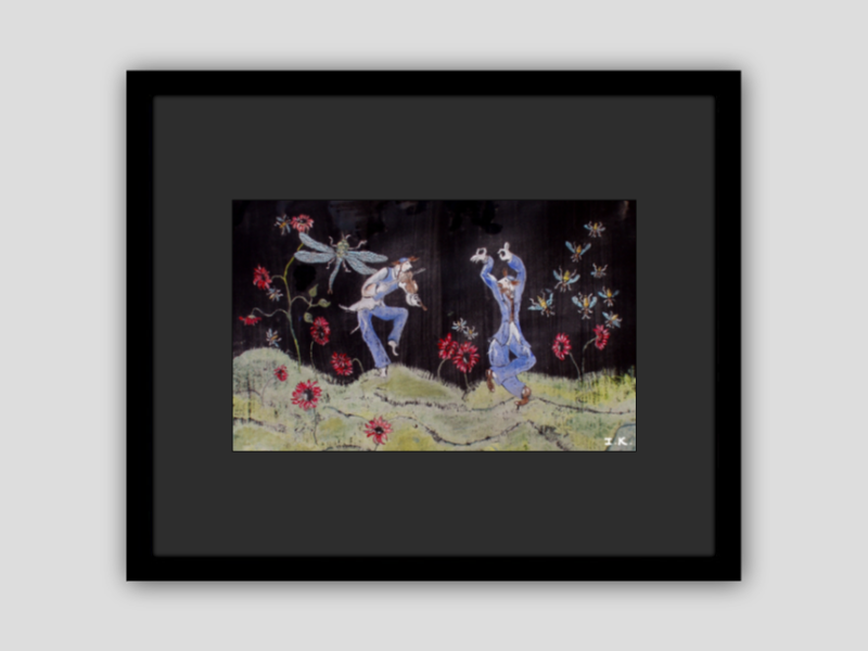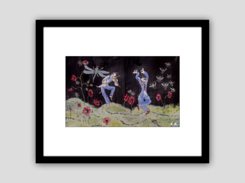 Print dimensions are 11" by 14". Matting is cut to 16" by 20". Image of print in mat and frame is not to scale. Frame not included.
