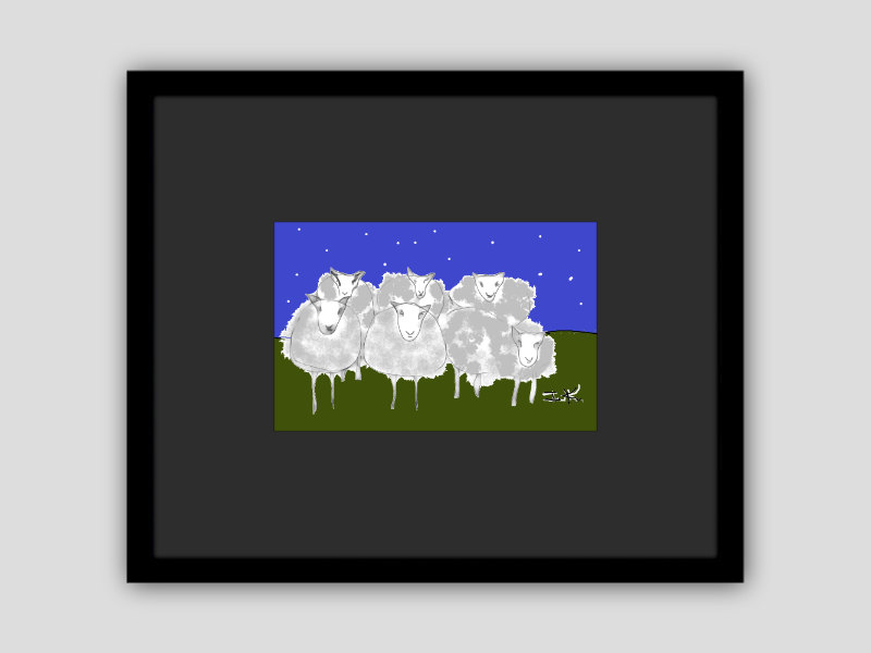 Print dimensions are 8" by 10". Matting is cut 11" by 14". Image of print in mat and frame is not to scale. Frame not included.