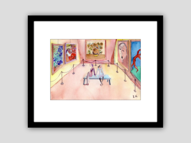 Print dimensions are 8" by 10". Matting is cut 16" by 20". Image of print in mat and frame is not to scale. Frame not included.
