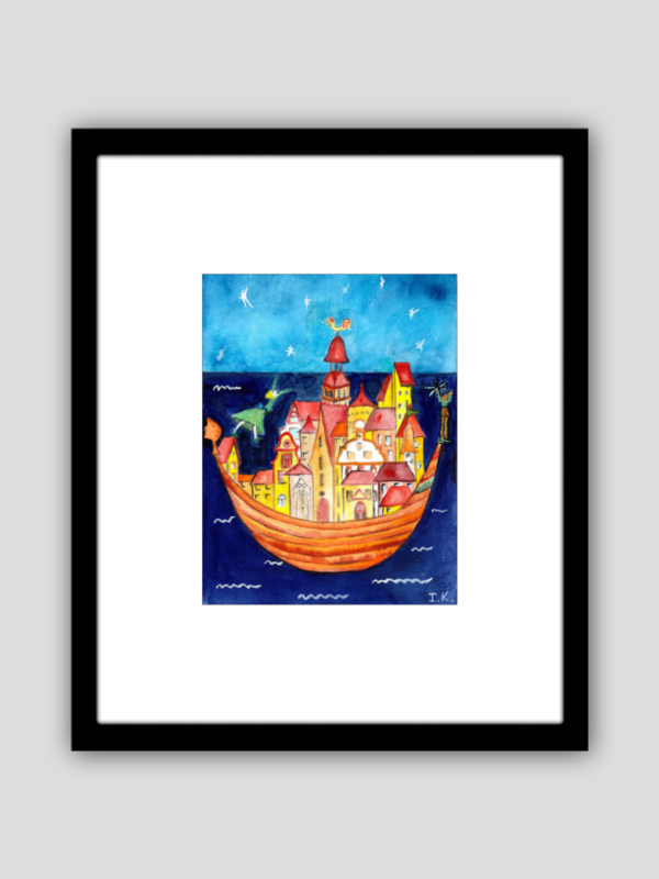 Print dimensions are 8" by 10". Matting is cut 16" by 20". Image of print in mat and frame is not to scale. Frame not included.