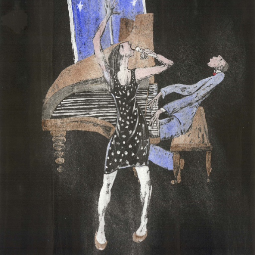 Tempera and ink wash on paper.