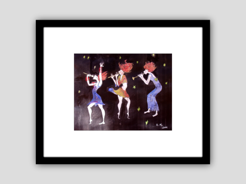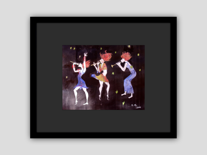 Print dimensions are 11" by 14". Matting is cut to 16" by 20". Image of print in mat and frame is not to scale. Frame not included.