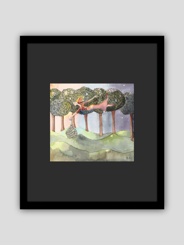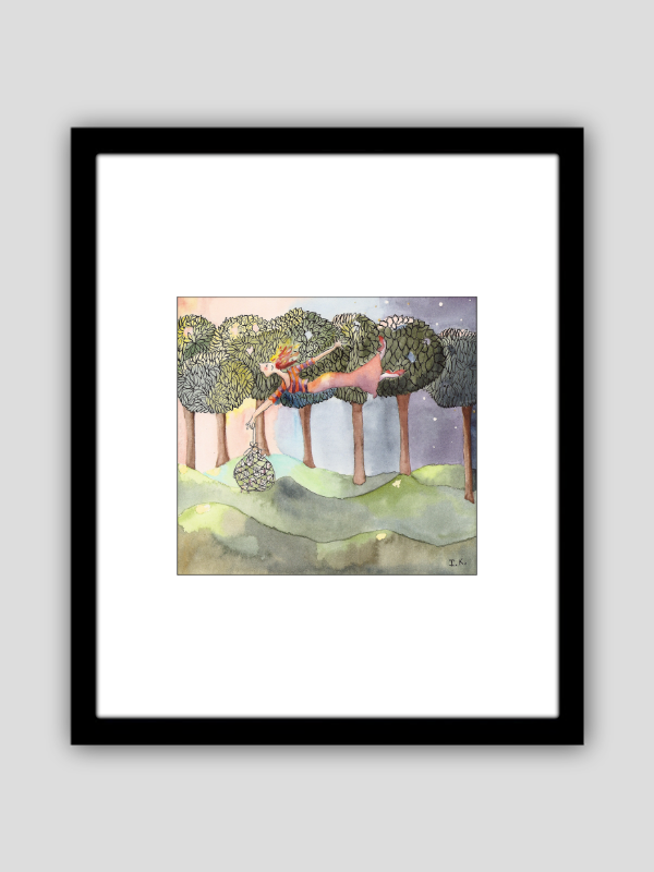 Print dimensions are 10" by 12". Matting is cut to 16" by 20". Image of print in mat and frame is not to scale. Frame not included.