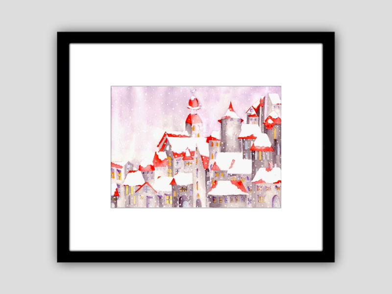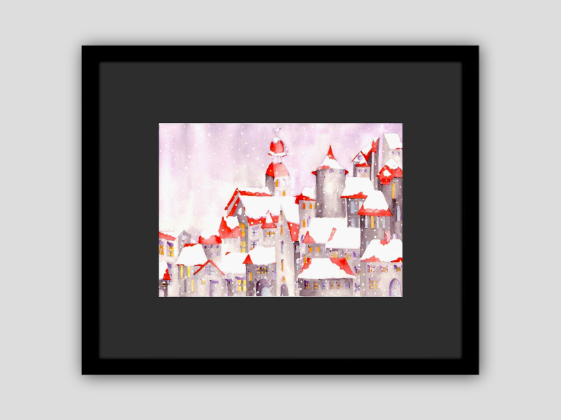 Print dimensions are 10" by 12". Matting is cut 16" by 20". Image of print in mat and frame is not to scale. Frame not included.