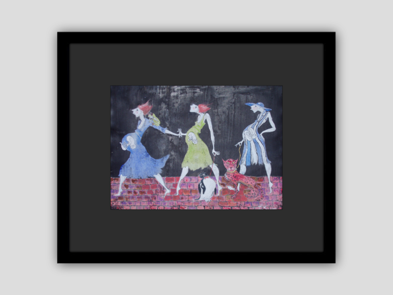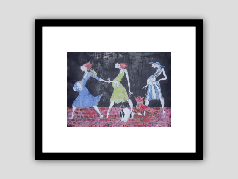 Print dimensions are 11" by 14". Matting is cut 16" by 20". Image of print in mat and frame is not to scale. Frame not included.